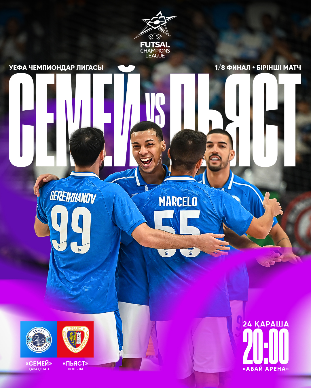 24 қарашада «Абай Арена» паркетінде бұрын-соңды болмаған ауқымды спорт мерекесі өтеді. УЕФА Чемпиондар лигасының 1/8 финалында жергілікті «Семей» мен «Пьяст» кездеседі, деп хабарлайды Tura18.kz.